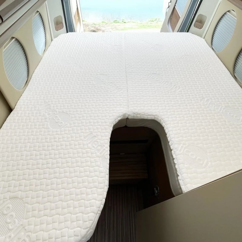 Da kaum eine Liegefläche im Camper genormt ist, lohnt sich der Blick auf Sonderformen. Maßgefertigte Matratzen passen sich exakt an den vorhandenen Grundriss an, egal, ob im Alkoven, unter einer Dachschräge oder im Heckbett. So entstehen Lösungen, die sowohl bequem als auch platzsparend sind.